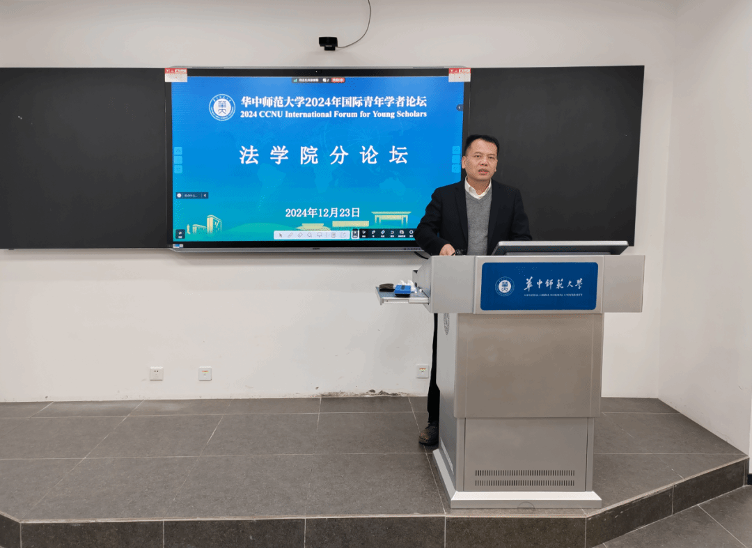 12月23日,华中师范大学2024年国际青年学者论坛——法学院分论坛在在法学院101教室举行。学校党委副书记、纪委书记刘继文,法学院党政班子成员、党委委员、学术委员会成员、教学委员会成员,以及来自世界各地高校的青年学者们通过线上线下相结合的方式参加了此次分论坛。本次分论坛由法学院院长丁文主持。