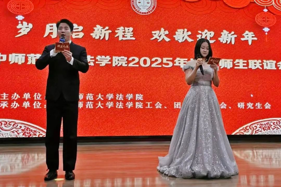 岁序更替,华章日新。12月27日,法学院于在文科综合楼一楼报告厅举办“岁月启新程,欢歌迎新春”法学院2025年元旦师生联谊会。学院全体党政领导班子成员、离退休老同志代表、教职工代表、学生代表200余人欢聚一堂,共同庆祝新年的到来。联谊会由学院党务干事曾谛、2023级硕士研究生朱宇轩主持。