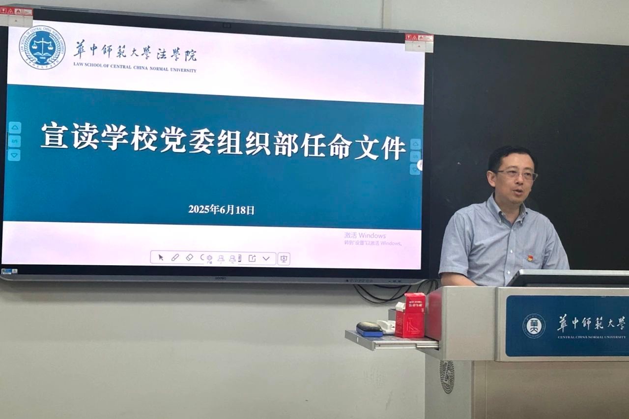 受学校党委组织部委托,杨臣宣读《关于刘梦觉等任职的通知》(华师组字﹝2025﹞16号),通知指出,周林同志任法学院党委委员、副院长。