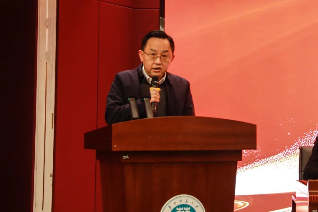 华中师范大学党委副书记、纪委书记刘继文致辞。刘继文书记代表学校对出席此次会议的各位领导和嘉宾表示热烈欢迎,详细介绍了学校百余年的办学积淀与学科发展优势,并强调民法研究要以习近平法治思想为指导,聚焦中国自主知识体系构建,精准回应公检法司等实务部门的业务需求,从而切实回应人民群众对美好生活与法治建设的向往,有效破解行业发展面临的实际问题。