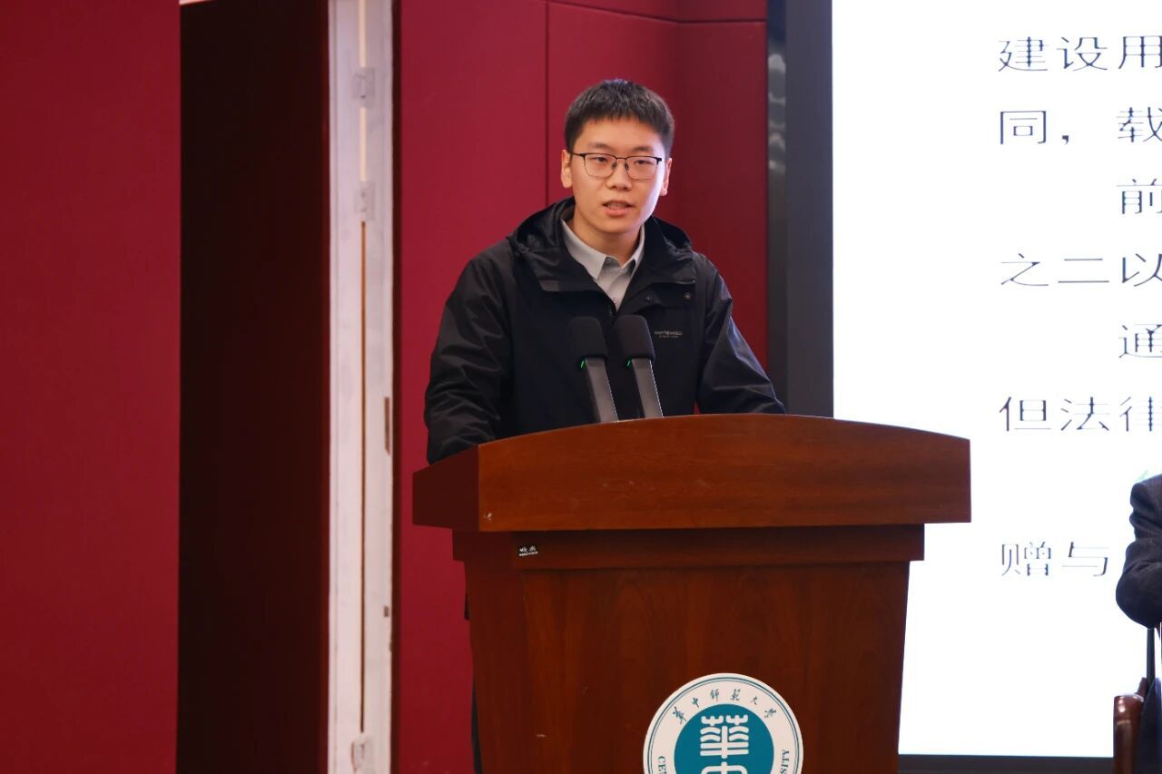 学术研讨环节分三个单元依次进行。我院丁文教授主持“主题报告”单元,昌雨莎老师以《企业数据许可使用合同数据质量义务标准研究》为题进行报告。我院博士研究生赵星宇在“主题研讨(上)”单元中以《集体经营性建设用地出租入市的权利属性与融资路径探析》进行汇报。我院文杰教授主持了大会的闭幕式。