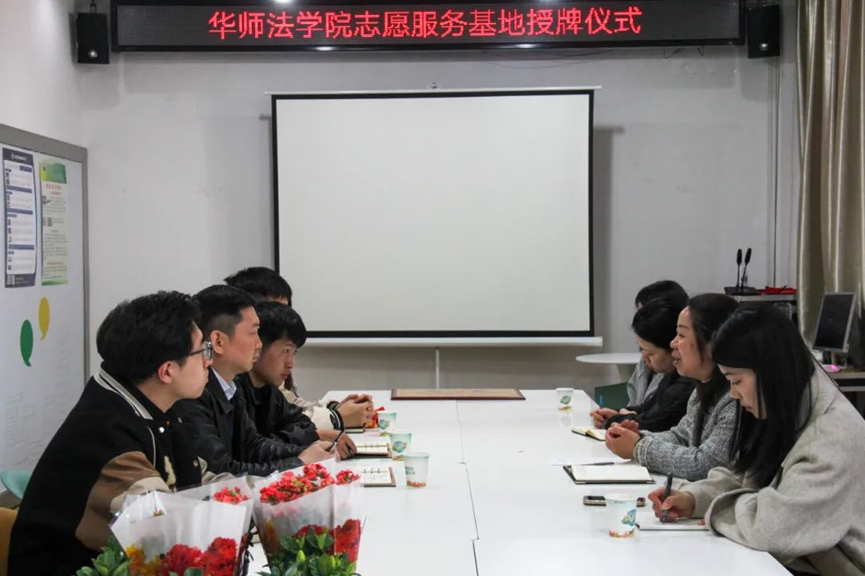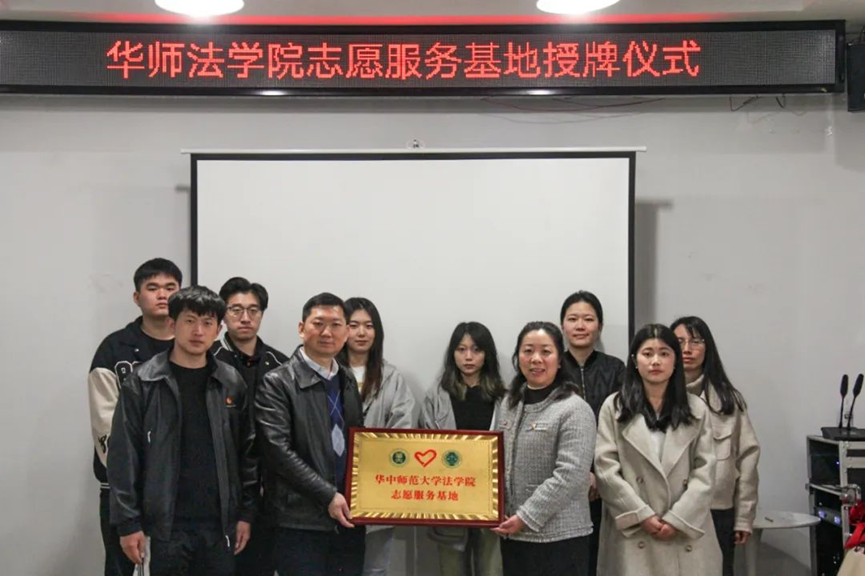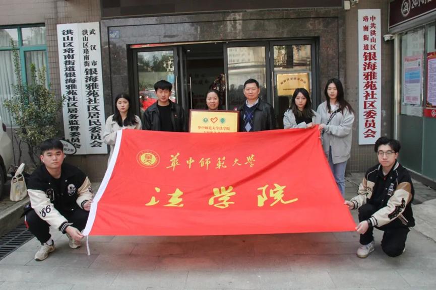 法学院讯(记者 余林倩 王杰)3月11日,华中师范大学法学院与银海雅苑社区举行“华中师范大学法学院志愿服务基地” 签约授牌仪式。法学院党委副书记万枞、银海雅苑社区书记兼主任文洁琼、社区党委副书记梁路、法学院团委书记张永基等出席仪式。